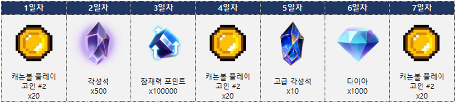 - 이벤트 내용: 이벤트 기간 동안 접속 시 출석 보상 획득