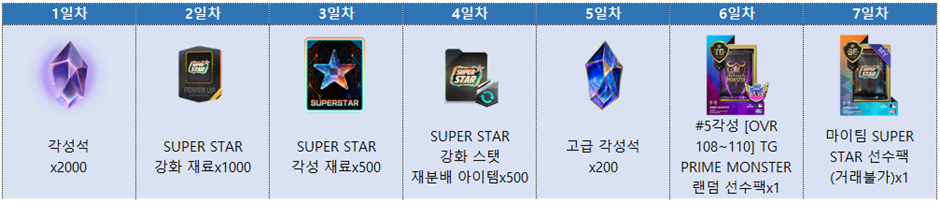- 이벤트 내용: SUPER STAR 선수 카드 훈련 시, 대성공& 초월 성공 확률 2배 적용