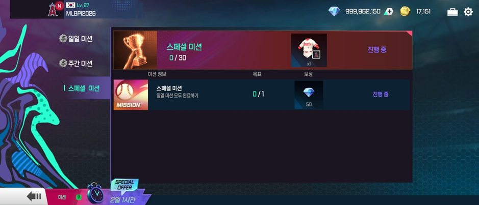 - [메인 로비→미션→스페셜 미션]에서 하루에 한 번 ‘오늘의 미션’을 클리어 할 수 있습니다.