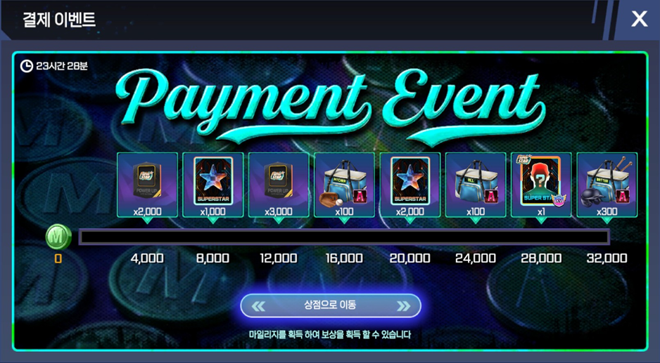 - 이벤트 내용: 결제 상품 구매 후 마일리지를 획득하여 마일리지 구간별 이벤트 아이템을 보상으로 획득
