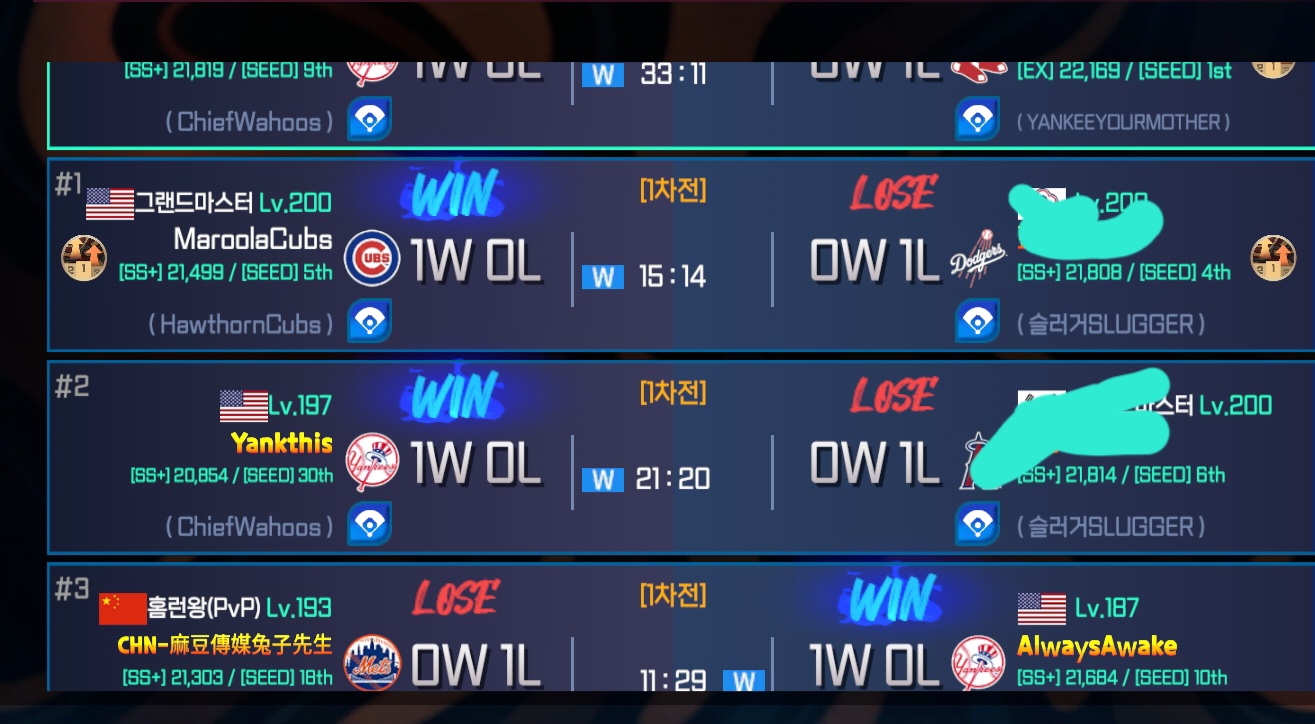 참고로 20점은 물론 30점씩 내고 이긴 승리팀 전부 다 AI덱임