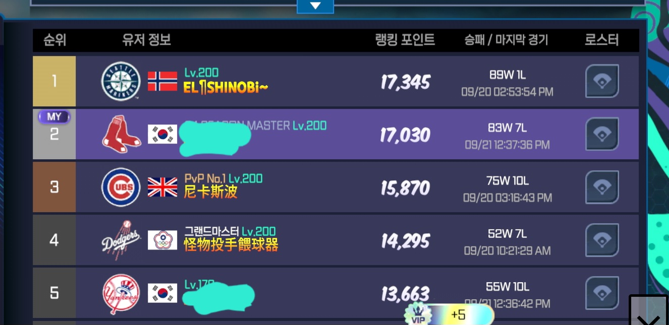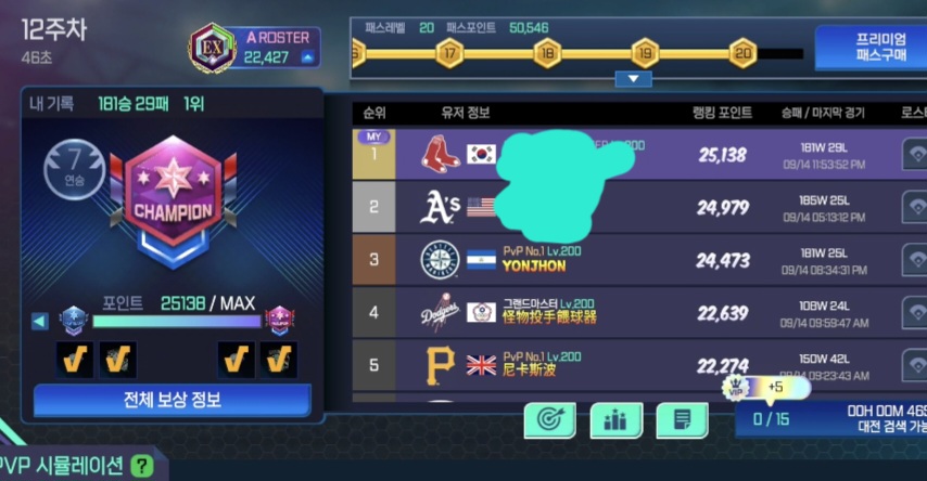 일단 계정 공유가 확실한 Yonjhon(현재 EL¶SHINOBI~로 닉을 바꾼) 과 Fo-fito(현재 尼卡斯波로 닉을 바꾼), 上帝保佑1979가 닉을 바꾼 怪物投手餵球器 셋이 항상 서로 대주고 나머지는 약한 대진으로 +100을 먹으며 상위권 유지(그러나 Fo-Fito=尼卡斯波 와 上帝保佑1979=怪物投手餵球器)덱은 다소 약하기 때문에 예전처럼 1,2,3위로 나란히 가기에는 다소 버거운 것이 보입니다.