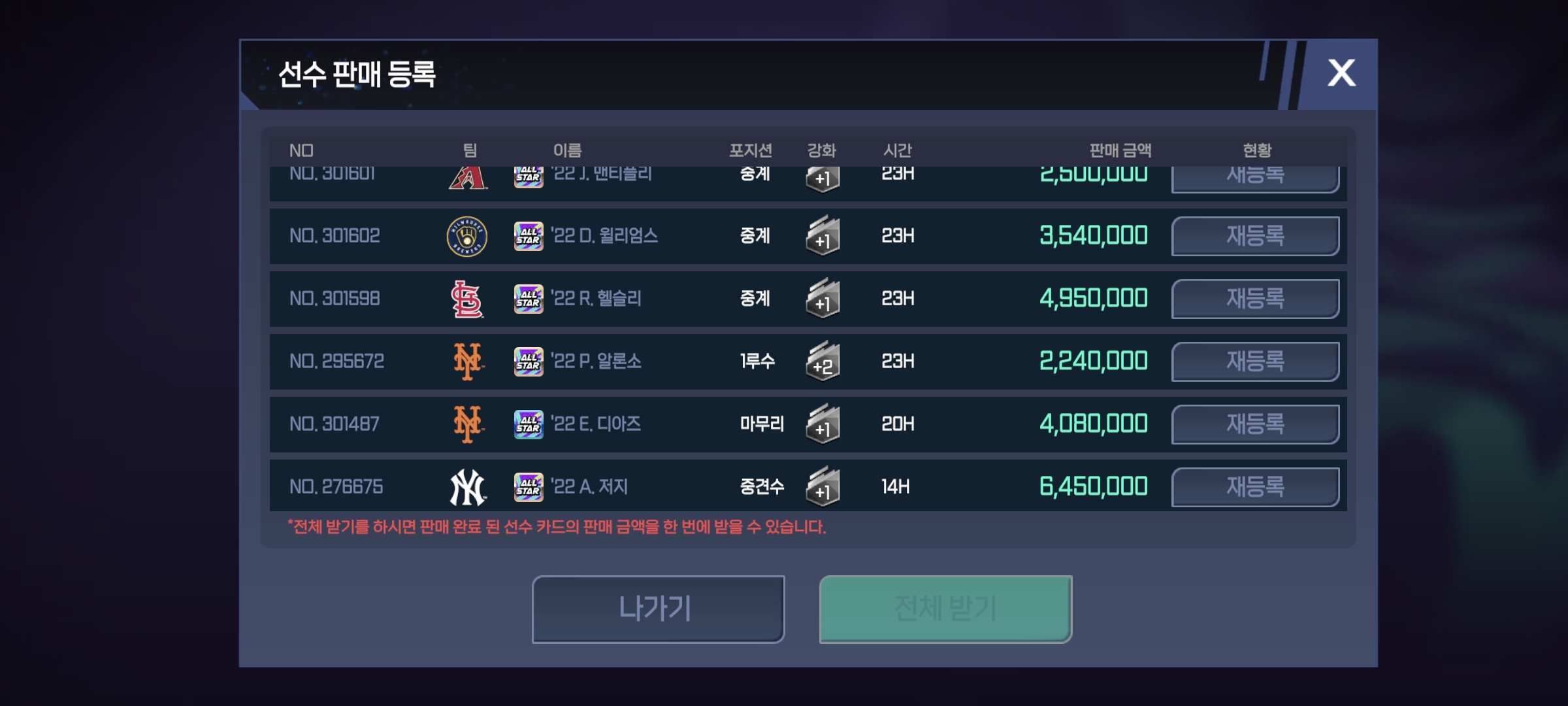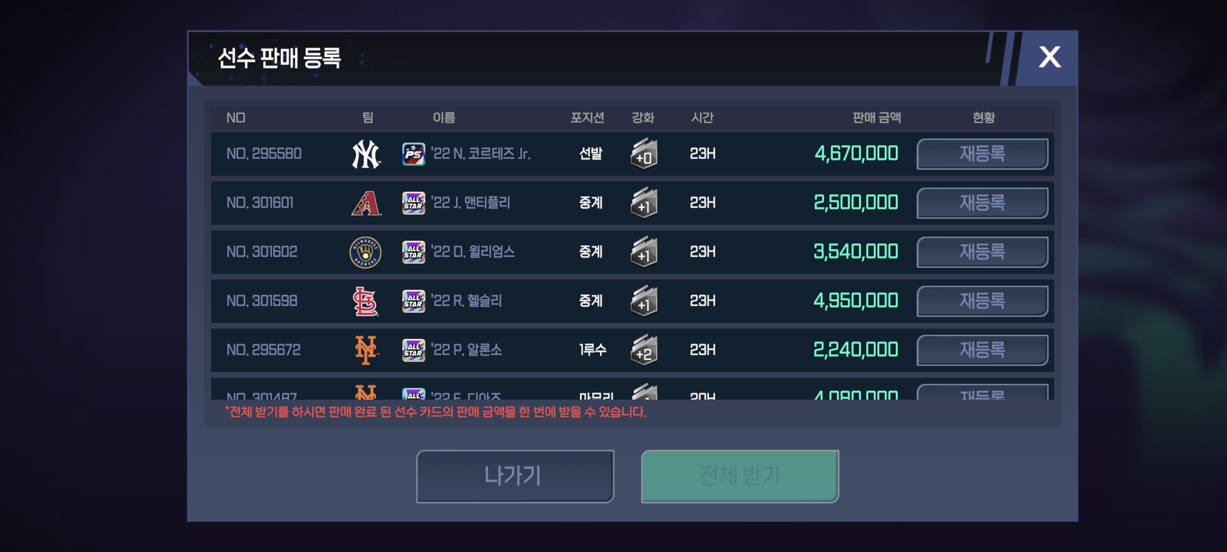 전체글 유저 수가 너무 없어서 이적시장 현 시점 Heymish 2022-10-18 22:45 1,217 2 공유 공유 URL 복사 페이스북 왓츠앱 카카오톡 라인 레딧 닫기 공유 매물을 최저가로 올려도 안팔려서 쌓이기만 할뿐ㅡㅡㅡㅡ 0 0 댓글 2