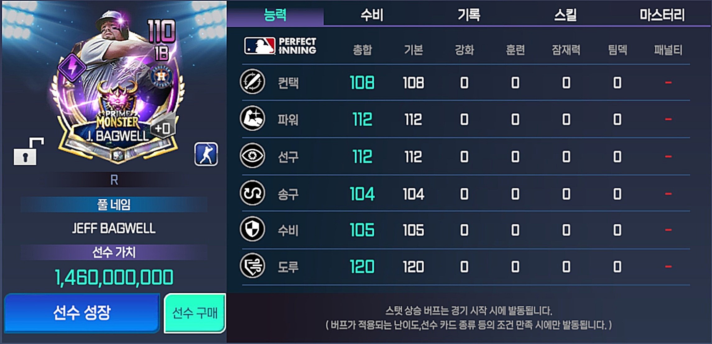 컨택이 108, 파워가 112, 선구가 112 처참하다 아무도 안 쓴다