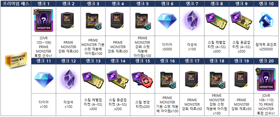 - 이벤트 내용: 패스 아이템을 획득하여 패스 레벨에 따라 보상 획득