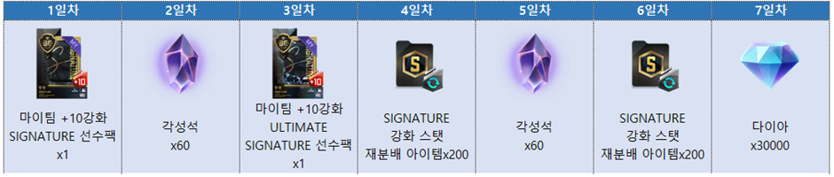 - 출석 적용 기간: 이벤트 기간 내 최초 로그인 시점부터 7일간 적용