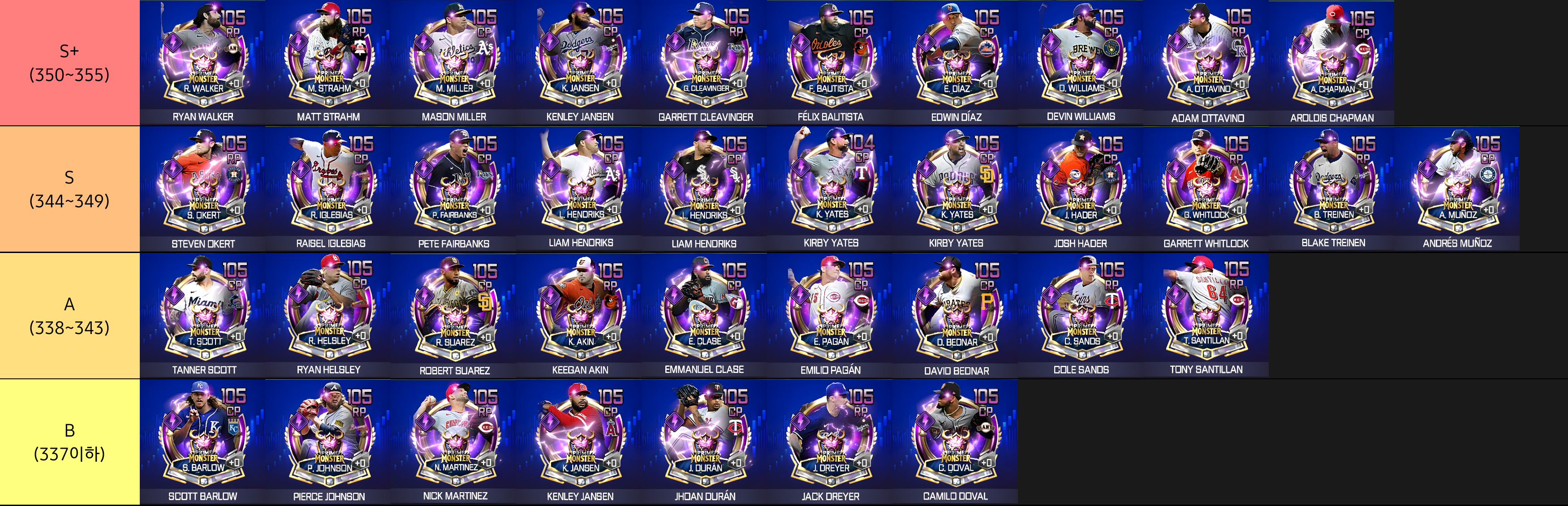 [공략] Prime Monster OVR 105 이하 RP&CP Top 37 티어리스트