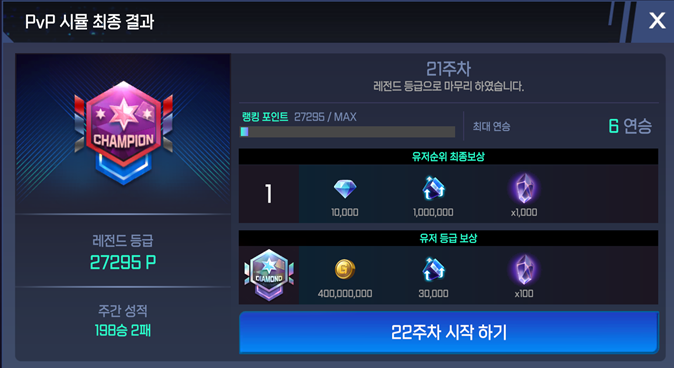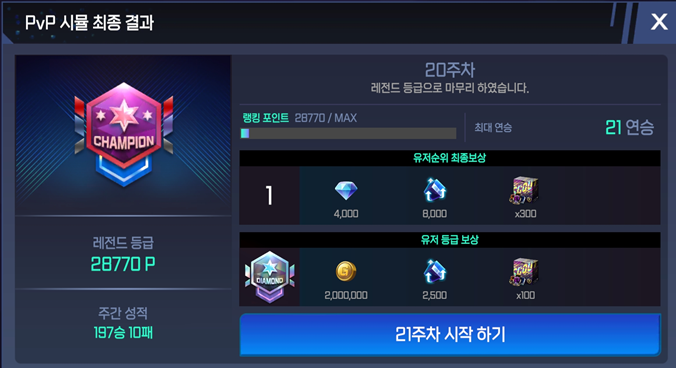 21 시즌 : 얼아리 – PVP 시뮬레이션 우승