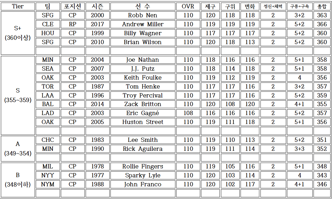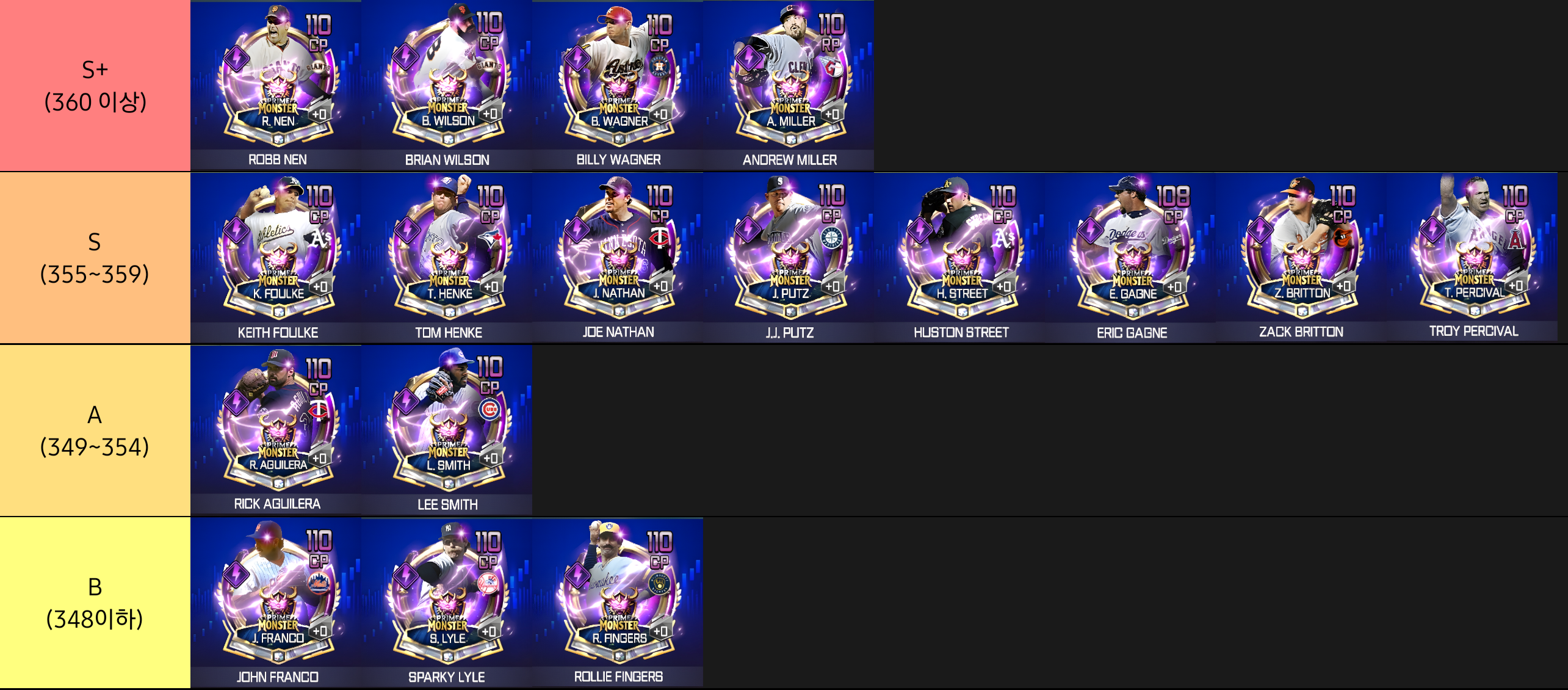 [공략]TG Prime Monster OVR 110 이하 RP&CP Top17 티어리스트