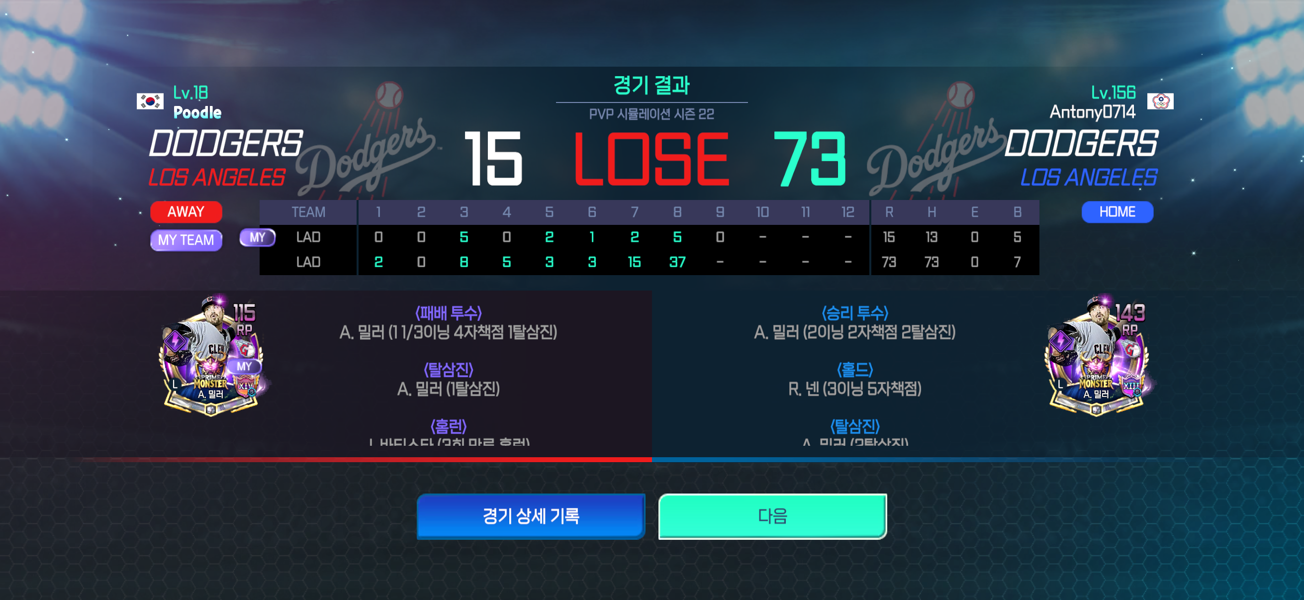 이로 인해 정상적인 스탯 반영이 되지 않은 상태에서 경기가 진행되었고,