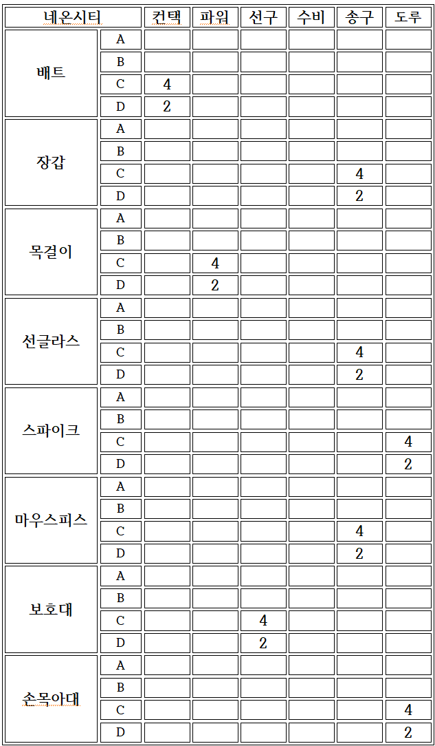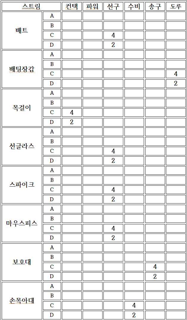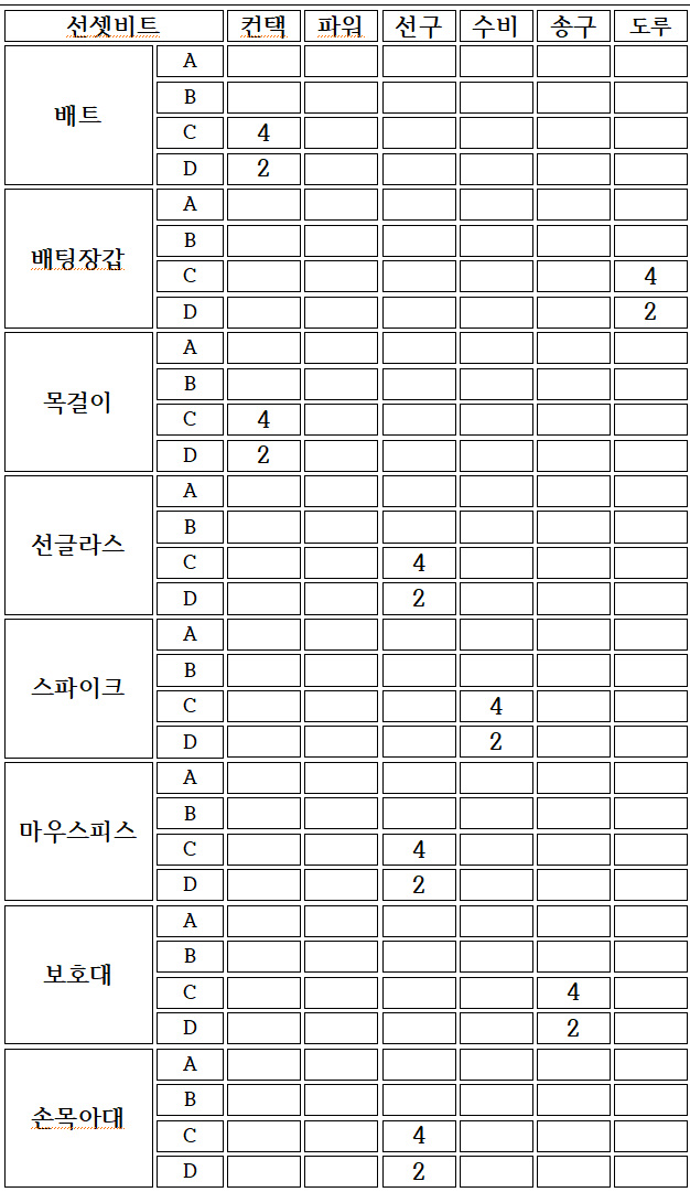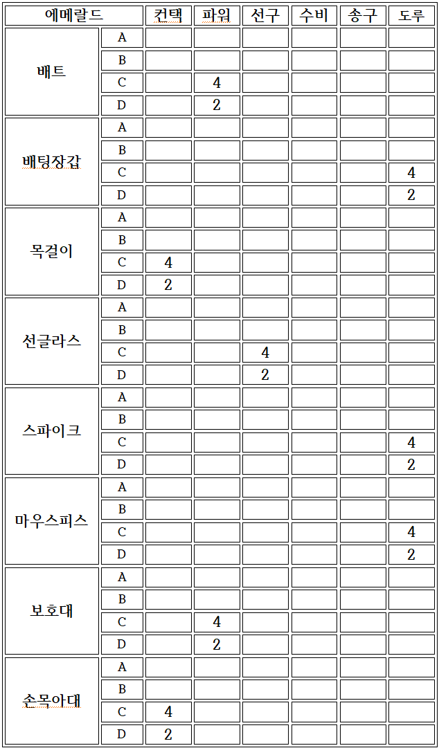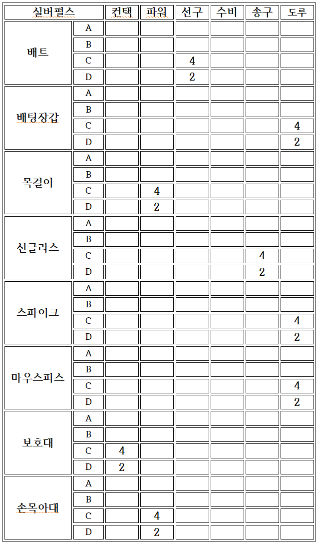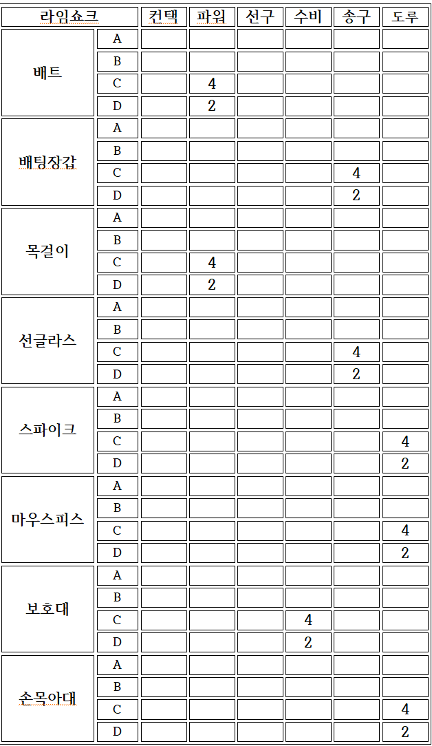 ∗ 추후에 추가될 등급에 대비하여 나머지는 공란으로 작성함.
