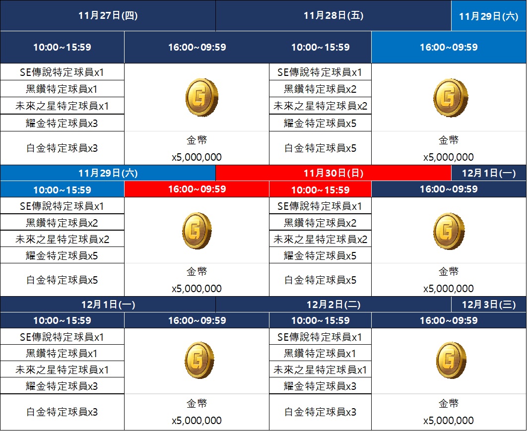 - 活動內容:活動期間內登入時,即可獲得簽到獎勵