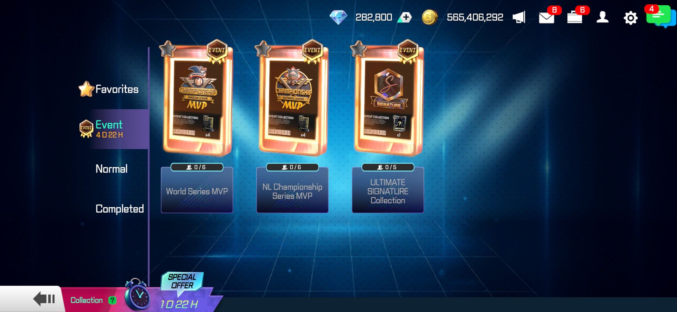 特定活動期間內才會啟用,於期間內完成收藏時,可獲得終極簽名球員卡作為獎勵。