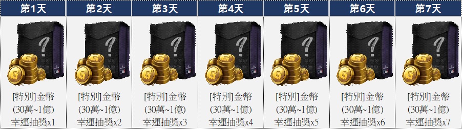 - 簽到套用期間:活動期間內首次登入日起7天內