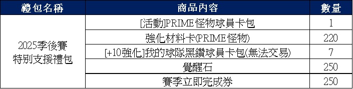 - 2025季後賽特別支援禮包可於[主大廳] → [推薦商店]獲得。