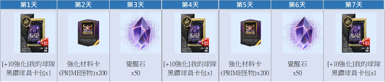 - 活動內容:進行球員卡強化時,基本材料的強化機率將提升2倍
