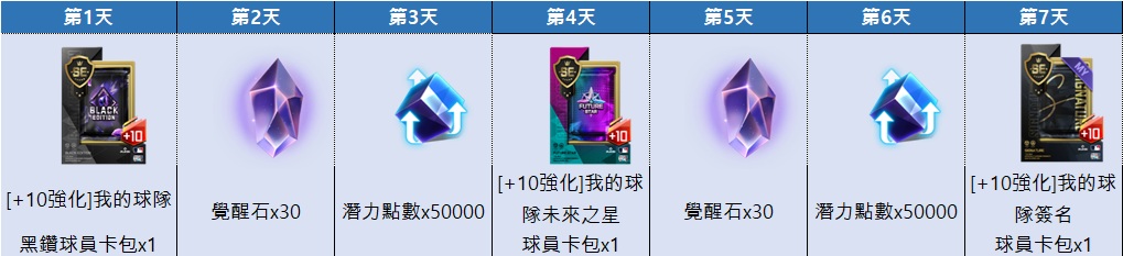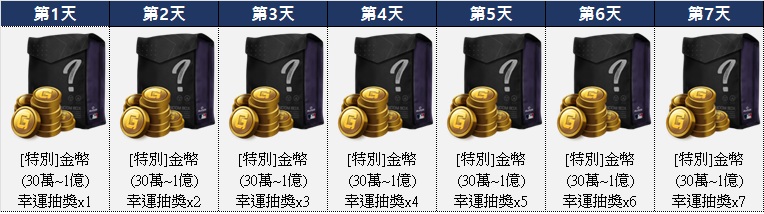 - 簽到套用期間:活動期間內首次登入日起7天內