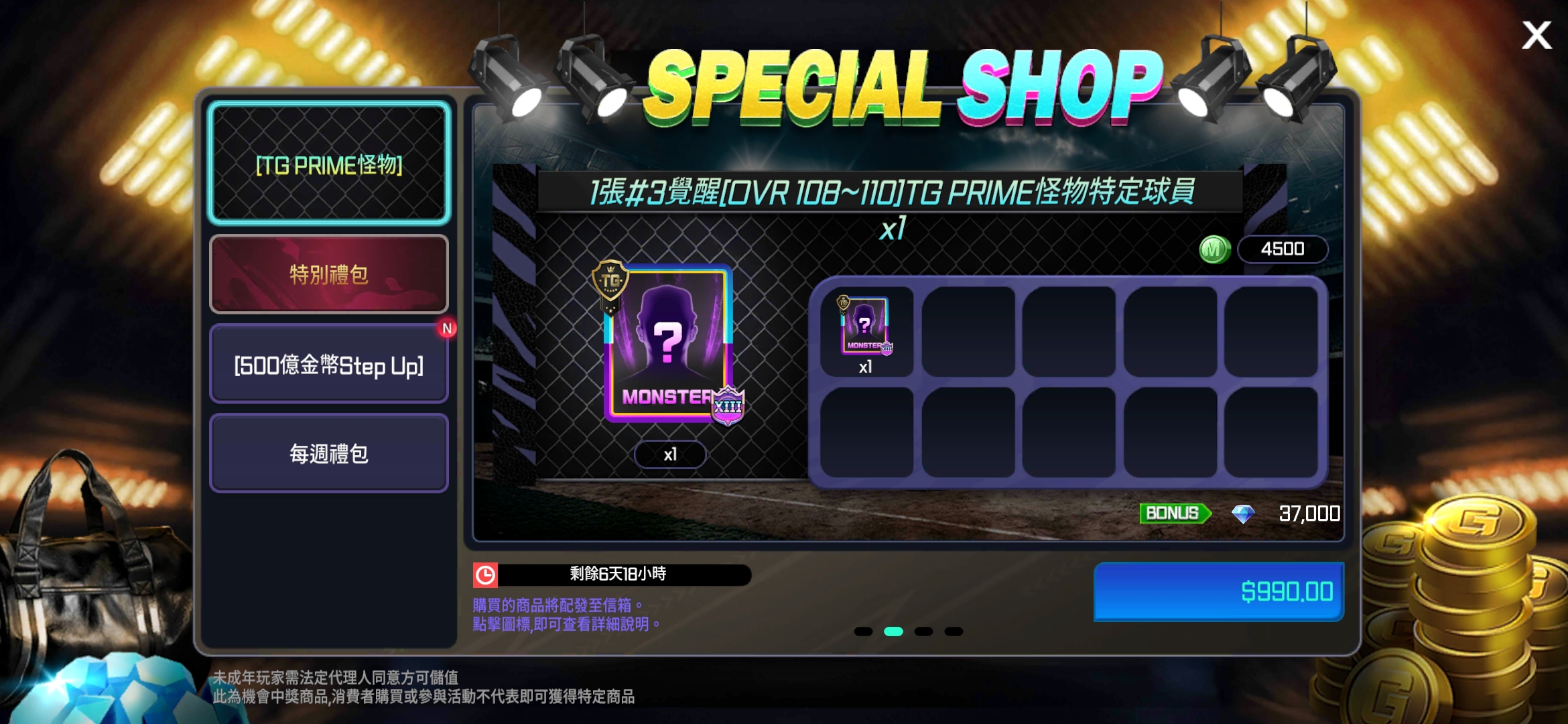 - 新增3個TG PRIME怪物禮包。