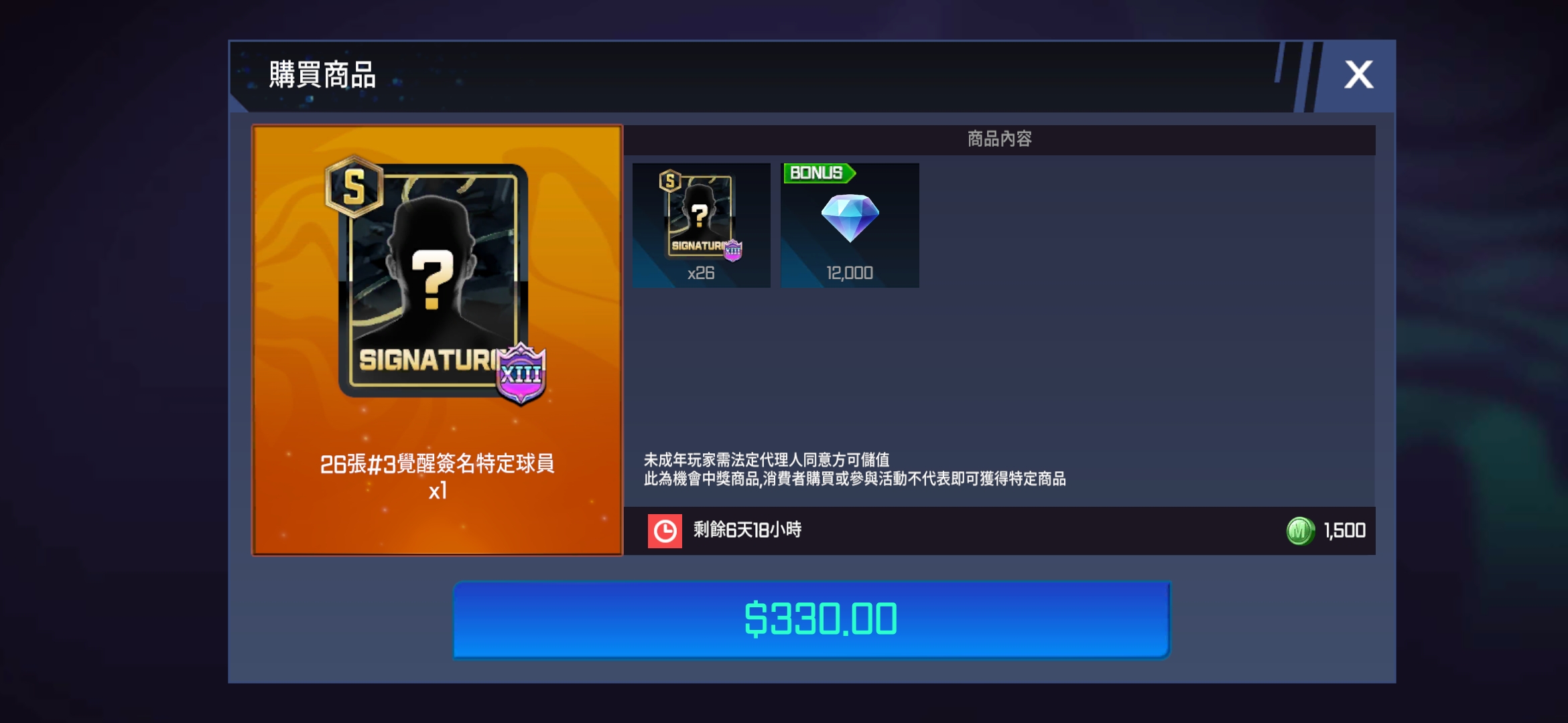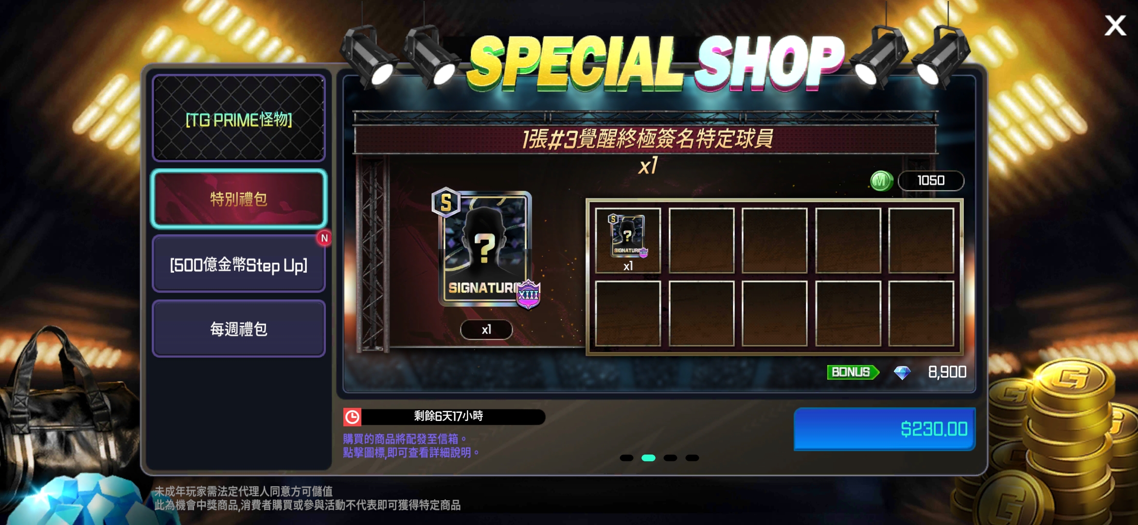 - 特別禮包「1張#3覺醒[OVR 103~106] PRIME怪物隨機球員卡包」商品名稱修正為「1張#3覺醒[OVR 103~106] PRIME怪物特定球員」。