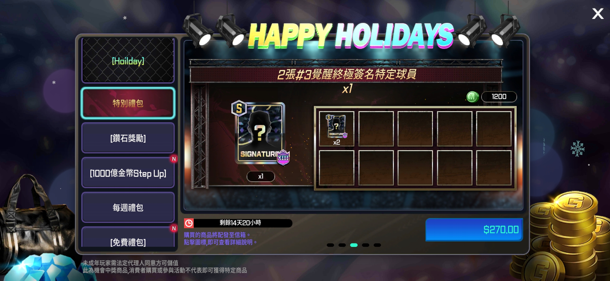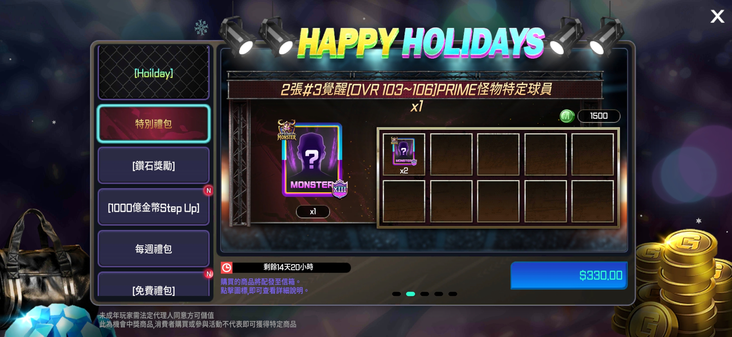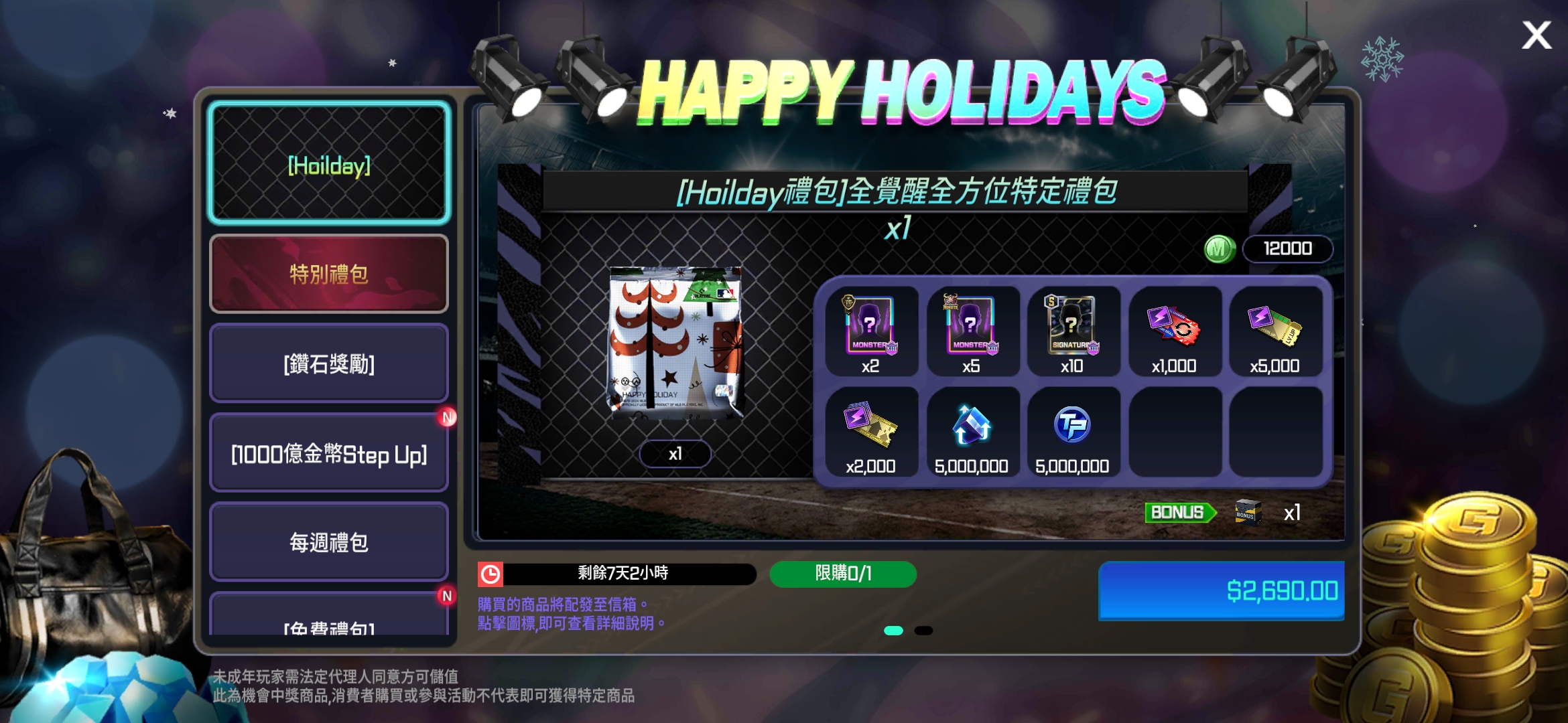 - 新增2個HOLIDAY禮包。