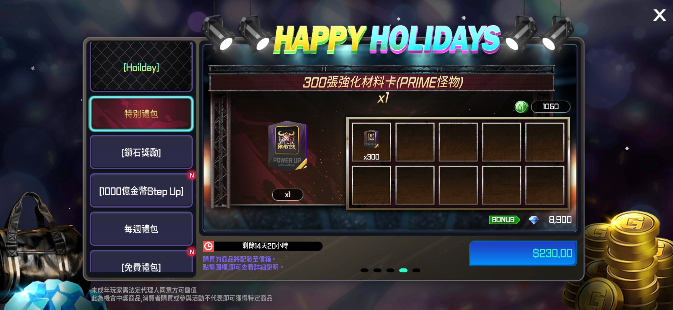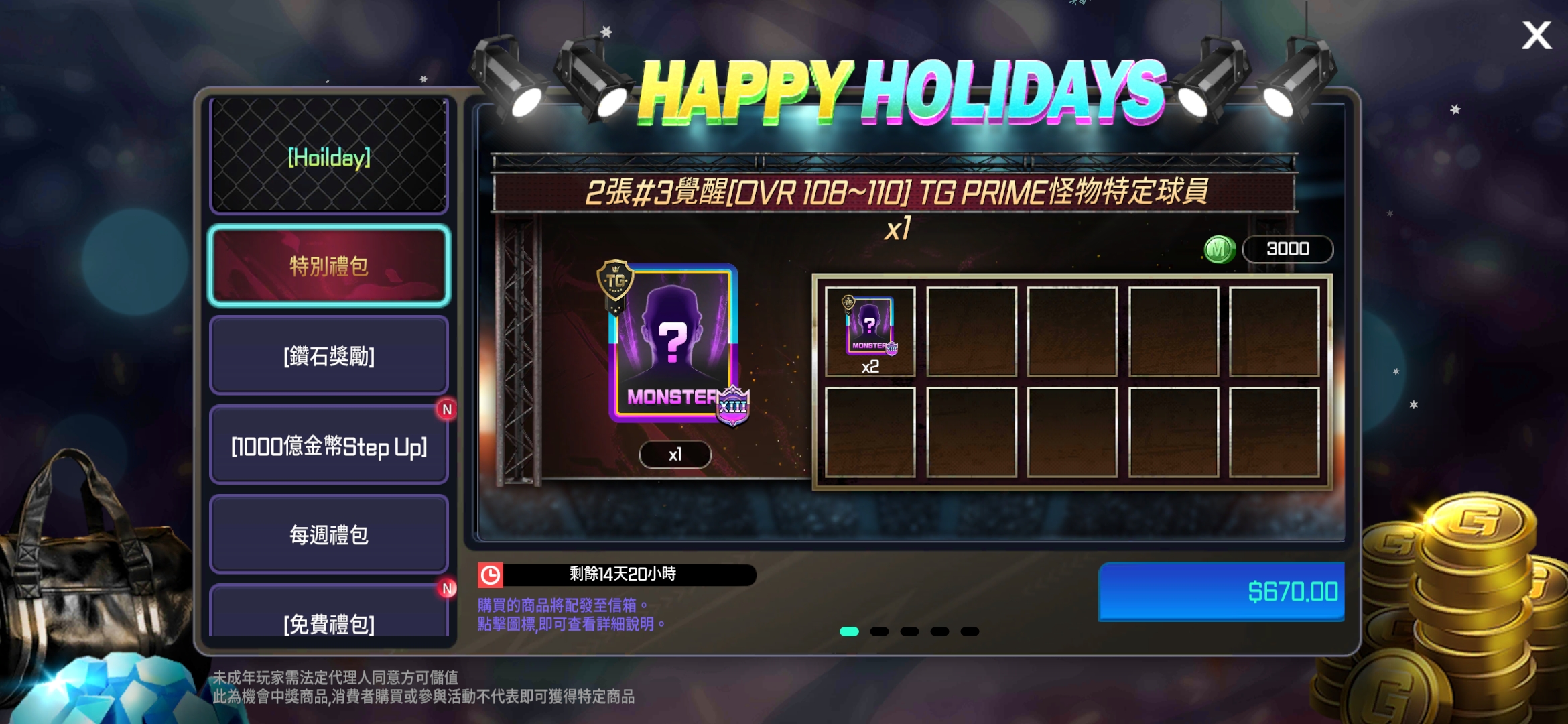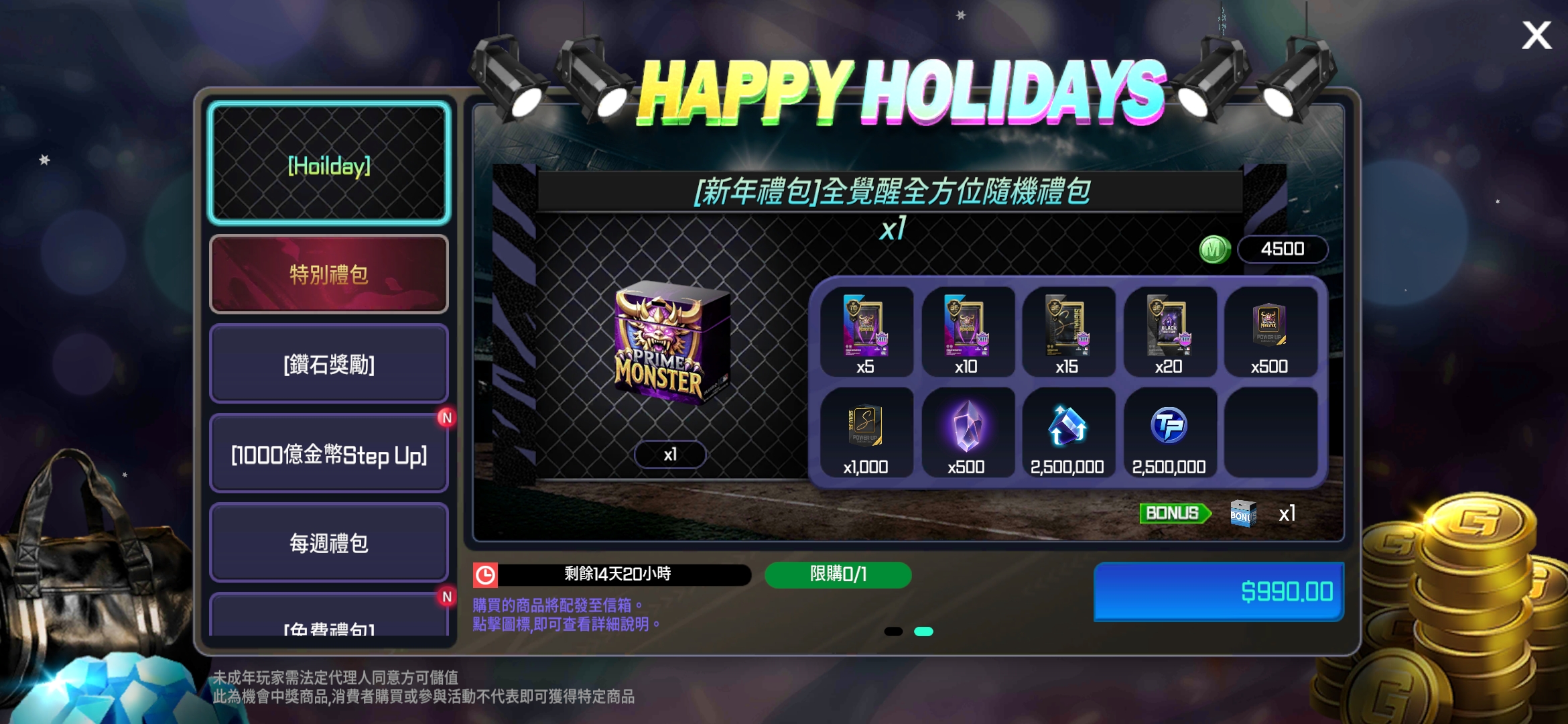 - 新增2個HOLIDAY禮包。