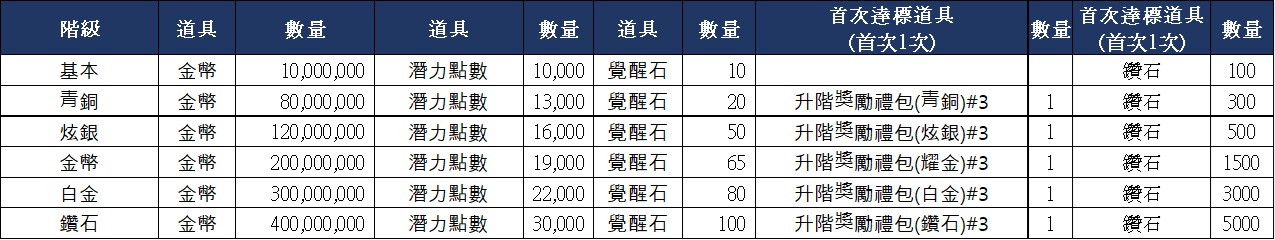 - 活動內容:獲得通行證道具後,可根據通行證等級獲得獎勵