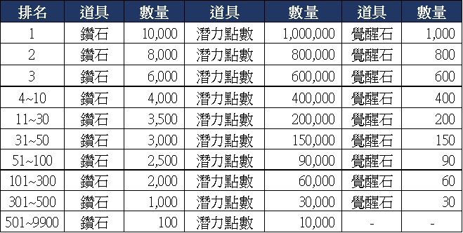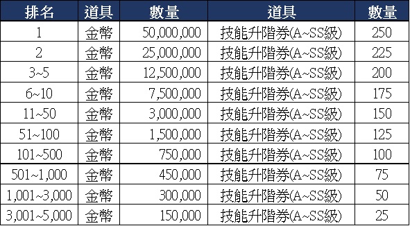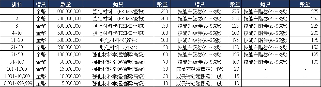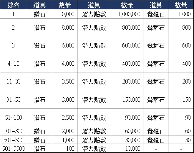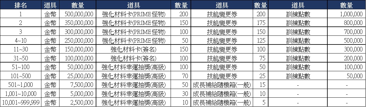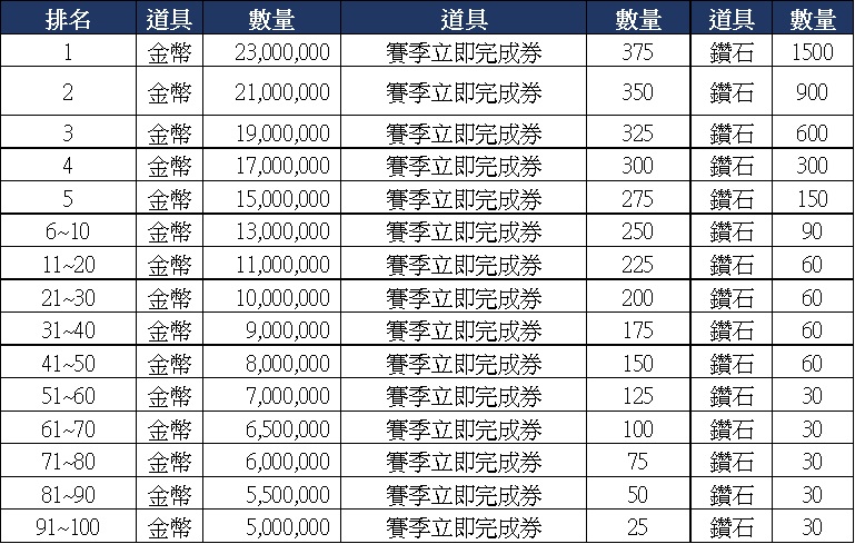 - 排名獎勵領取期間:1/21(三) 10:00 ~ 1/28(三) 10:00