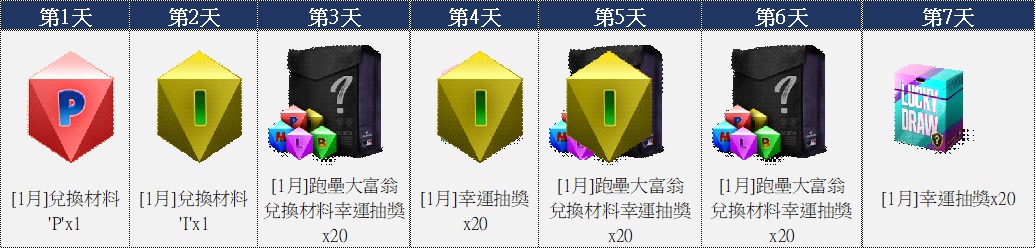 - 簽到套用期間:活動期間內首次登入日起7天內