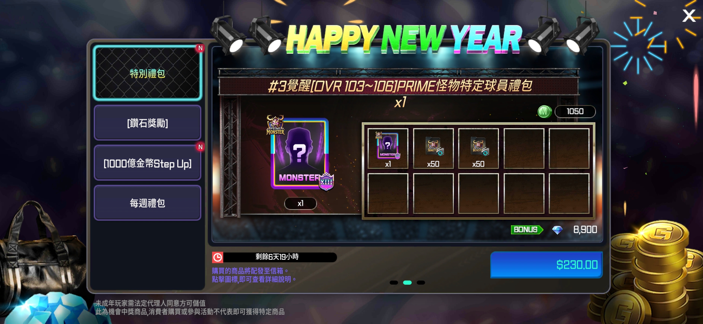 #3覺醒[OVR 103~106]PRIME怪物特定球員禮包