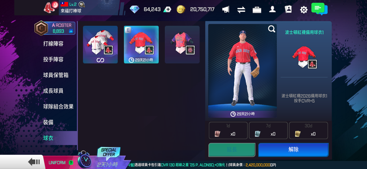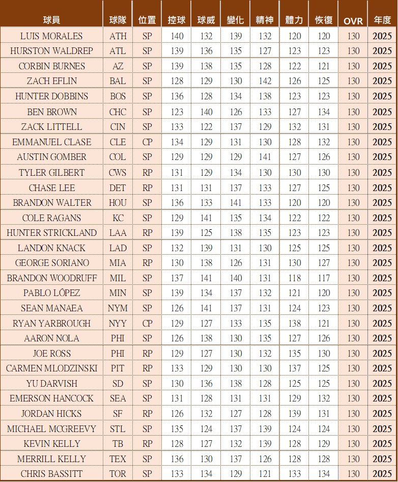 - 穿戴球衣時,球隊投手的球威、控球、變化能力值將套用+10。(基本球衣除外)