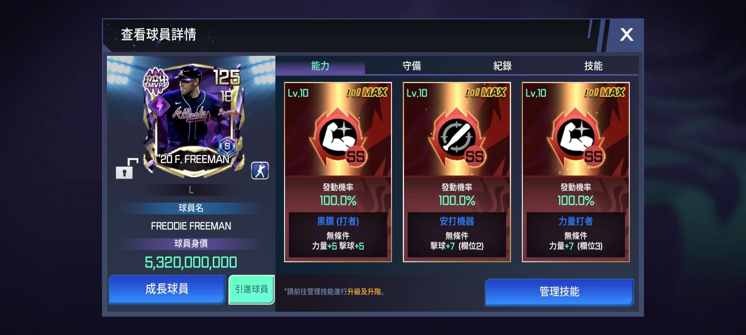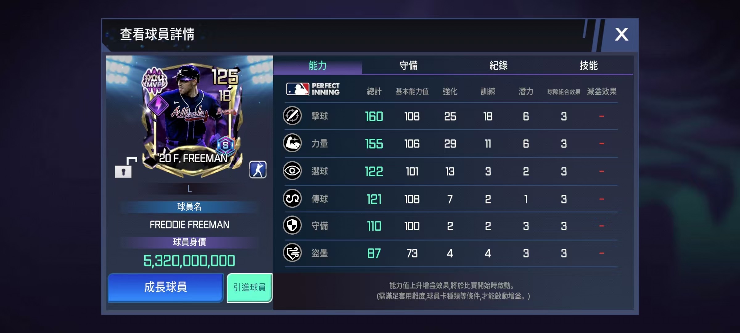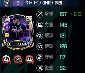 俱乐部阵容里的freeman(图1)明明击球数值160,另外两个技能100%触发额外+12点(图2),结果到了比赛中数值严重偏低!(图3)这游戏还能玩吗?