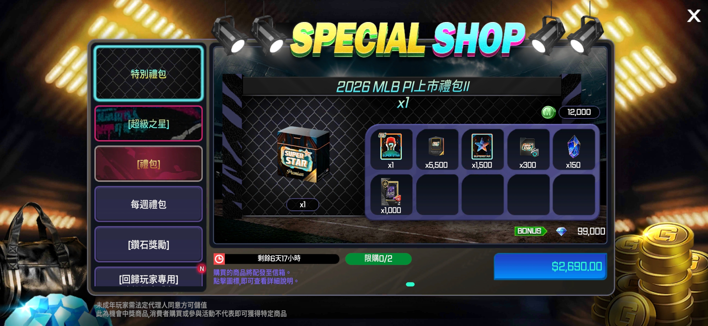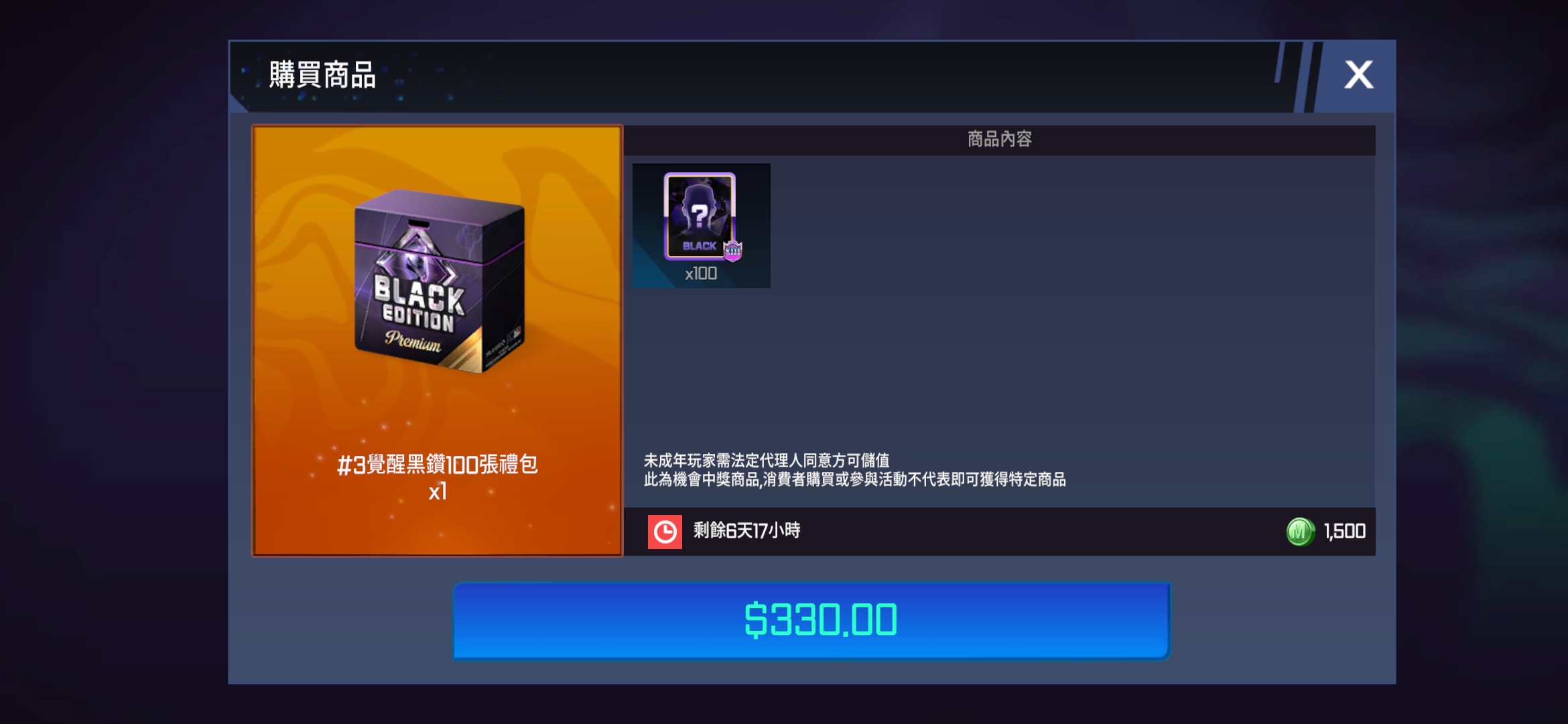 - [+10強化]黑鑽隨機球員卡包 1,000